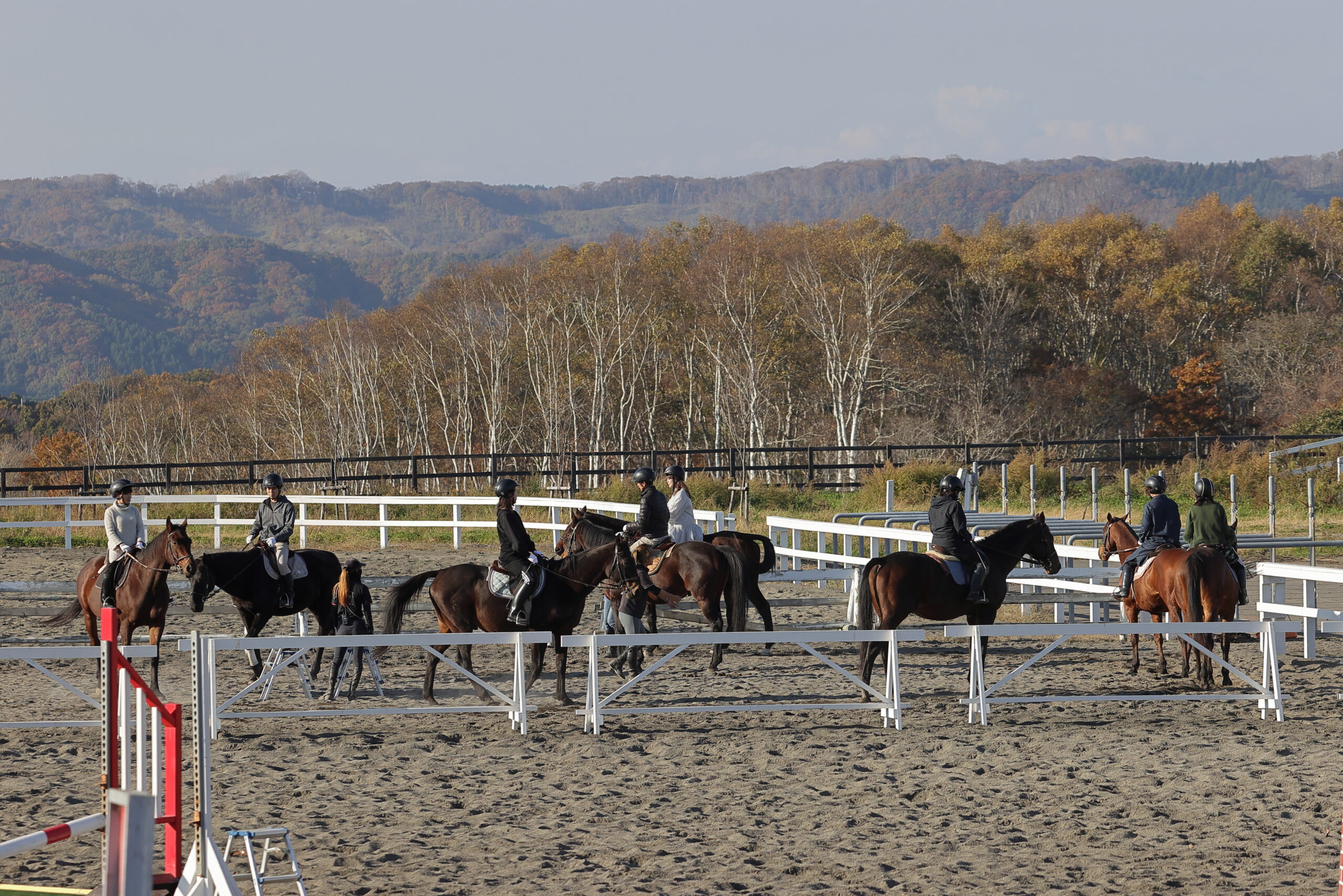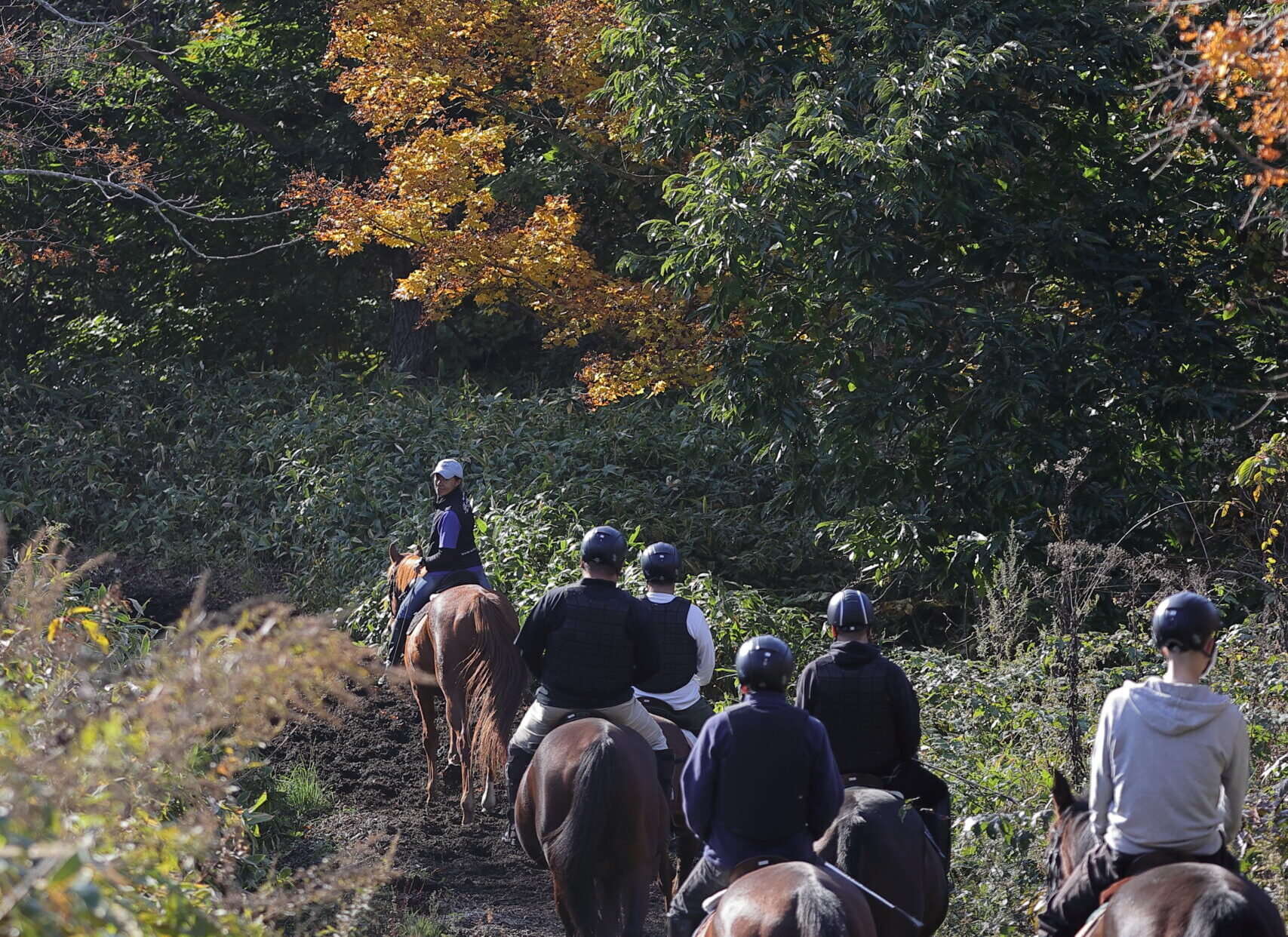 馬場内での練習なしですぐに森へのトレッキングに出発するコースです。