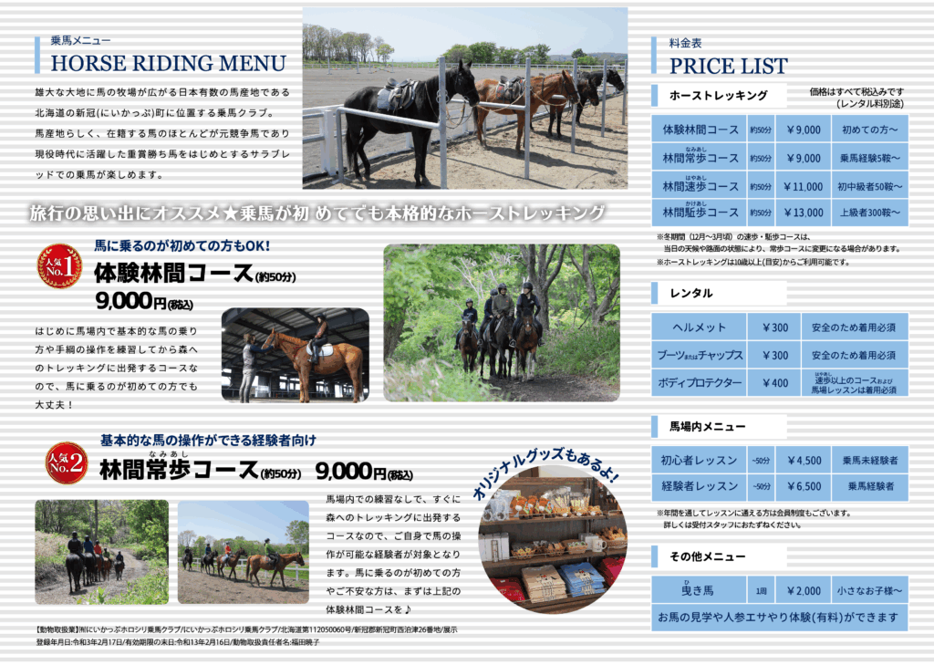 ※ 曳き馬以外の全コースで乗馬用ブーツ・ヘルメット着用必須